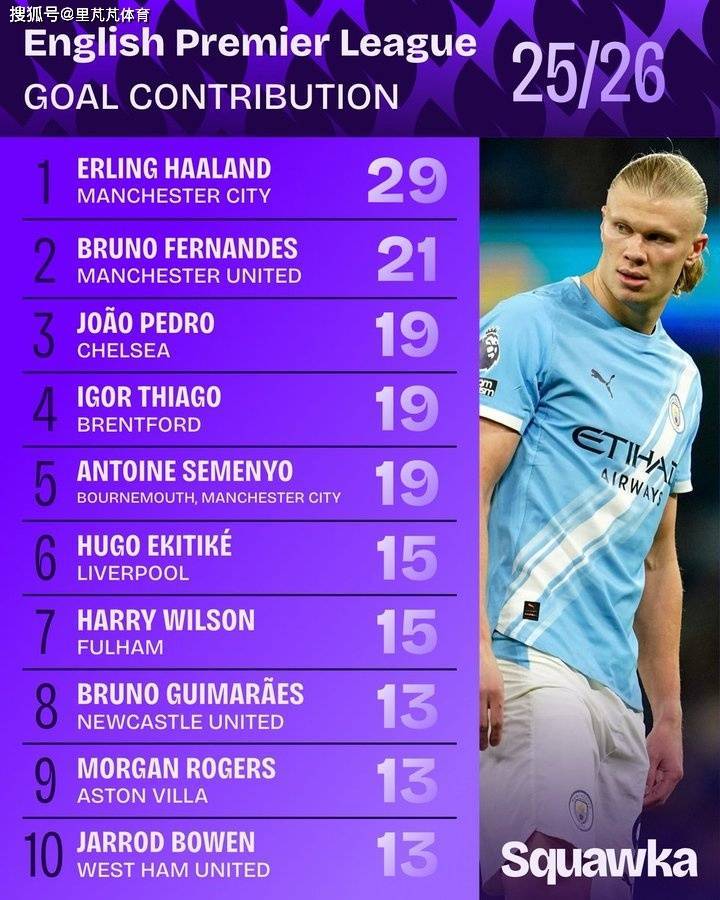 一日英超动向:哈兰德领跑参与破门榜单,U21球员谁的身价更高